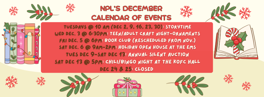 Our annual silent auction fundraiser is live, and you have until Saturday, December 13th at 7pm to place bids! Go to the Facebook event page here and comment under the pictures on the bidding post or come into the library during business hours to place bids.