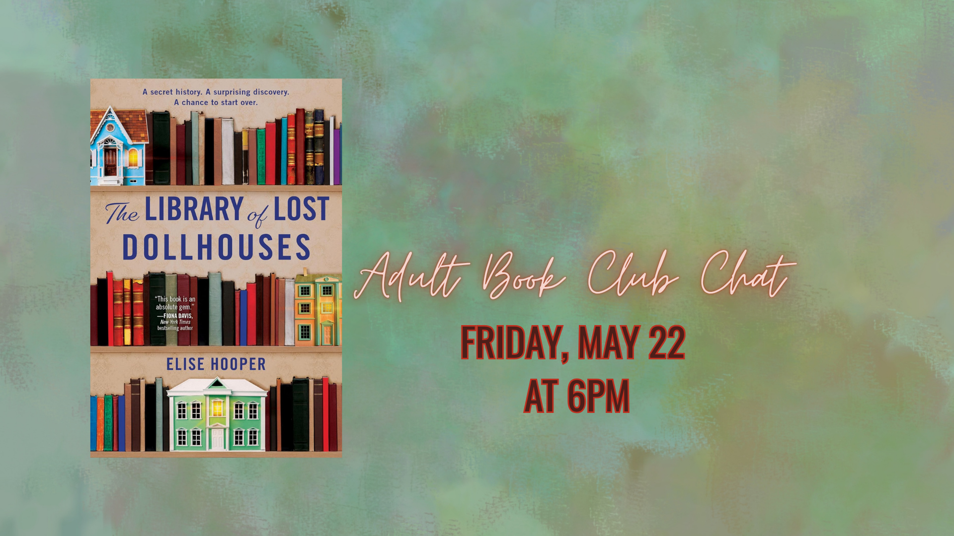 Join us for a relaxed chat about “The Library of Lost Dollhouses” by Elise Hooper.